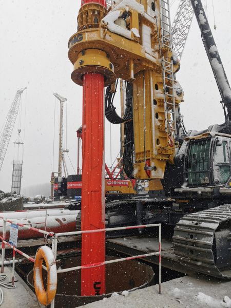 中新網(wǎng)安徽新聞2月7日電 (通訊員趙懿 完顏亮) 2月7日上午,連續(xù)十幾個小時大雪后,地上積雪已達(dá)到七八厘米厚,中鐵大橋局G3銅陵公鐵長江大橋現(xiàn)場在大雪中大干。3#主墩,5臺旋挖鉆在同時施工,工人們冒著寒冷和大雪在安裝鉆孔樁的鋼筋籠。項目部為工人配發(fā)了雨衣、保溫棉服等御寒安全用品,保障安全作業(yè)。